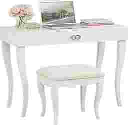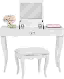 An ideal choice for the fashionista in your life, the Rylee vanity desk & stool set is the perfect space to prepare for the day ahead. Made from poplar solids and birch veneers in a classic white finish, the vanity's top features a fliptop lid and two USB outlets. Polished chrome hardware accents the shaped drawer front, creating beautiful functionality. The included stool features tapered legs and a comfy padded seat, adding to the contemporary design.