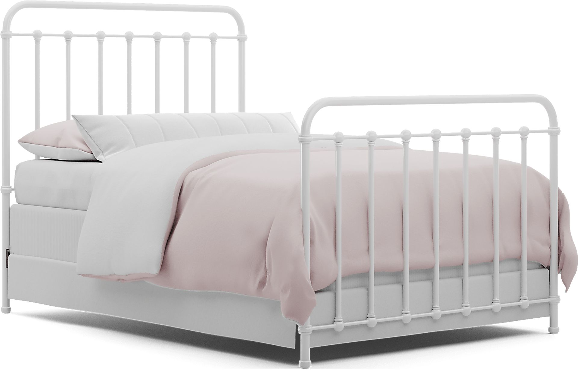 Whether it be the majestic flourishes of modern, minimalistic charm or the simple design that makes styling it up a cinch, the Saddlerock bed has the look you've been dreaming of. Crafted of steel in with a durable powdercoat white finish, this piece features an appearance shaped by clean lines and rounded corners. Side rails bolt to the interior of the head and footboards, enhancing the easy-going silhouette. Cylindrical bun feet cap the look with a magnificent final touch. Mattress and foundation (if required) sold separately.