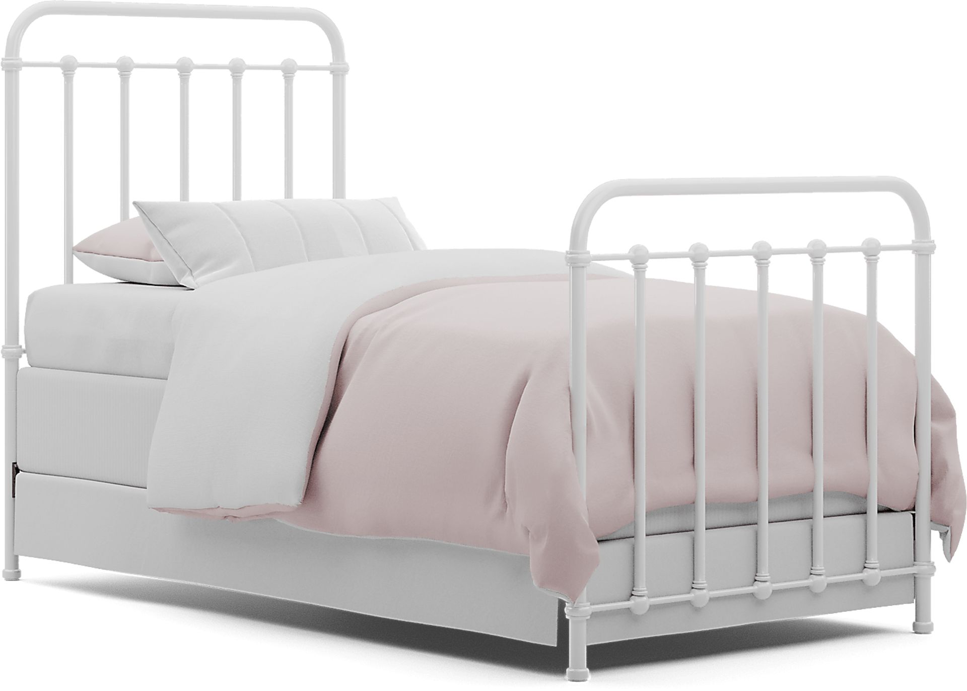 Whether it be the majestic flourishes of modern, minimalistic charm or the simple design that makes styling it up a cinch, the Saddlerock bed has the look you've been dreaming of. Crafted of steel in with a durable powdercoat white finish, this piece features an appearance shaped by clean lines and rounded corners. Side rails bolt to the interior of the head and footboards, enhancing the easy-going silhouette. Cylindrical bun feet cap the look with a magnificent final touch. Mattress and foundation (if required) sold separately.