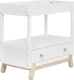 This unit features a dual-storage design to keep your nursery organized and functional. It includes a spacious open shelf for quick-access items like wipes and diapers, as well as a large bottom drawer. This combination allows you to keep bulky essentials tucked away while maintaining a clean, minimalist look in the room.