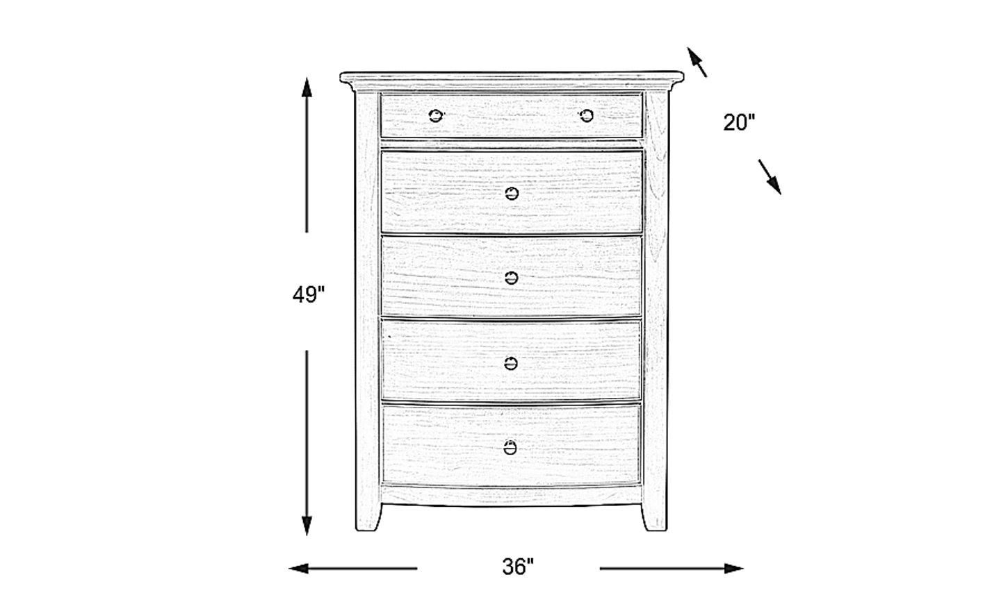 Yes, this unit is an excellent choice for space-conscious rooms. With a width of 36 inches and a vertical height of 49 inches, it utilizes a "tall and narrow" profile that maximizes storage capacity without consuming excessive floor space. The five generous drawers provide ample room for a full wardrobe, making it an efficient alternative to wider, bulkier dressers in compact living environments.