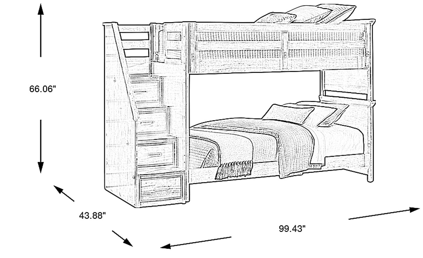 With transitional styling that will stay appealing as your child gets older, the Santa Cruz twin/twin step bunk is a terrific choice. Made of pine solids and veneers with a brown cherry finish, this bunk is sturdy to ensure your child is safe while enjoying their new bed. Steps at the end of the bunk make for easy access to the top bunk while built in storage drawers keep your child's room organized and maximize space. Ball before bed with the included basketball hoop. Mattresses and foundations (if required) sold separately.