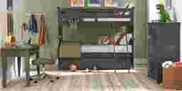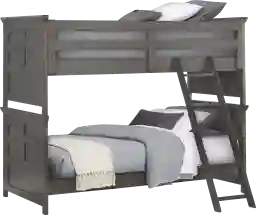 With transitional styling that will stay appealing as your child gets older, the Santa Cruz twin/twin bunk is a terrific choice. Made of pine solids and veneers with a gray finish, this bunk is sturdy to ensure your child is safe while enjoying their new bed. Ball before bed with the included basketball hoop. Mattresses and foundations (if required) sold separately.