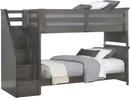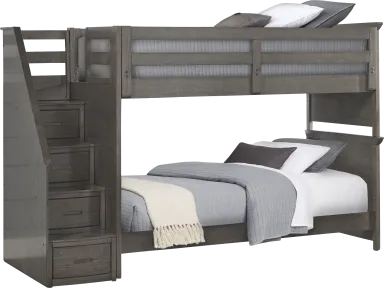 Transitional in appeal, the Santa Cruz twin/twin step bunk bed is a terrific choice. Blending form with function, this sturdy bunk pairs safety with style. The steps allow easy access to the top bunk while built-in drawers emphasize organization and maximized space. Perfect for existing decor, the neutral gray finish pairs well with any space. Add a trundle (sold separately) beneath the bed for additional storage and sleeping potential.