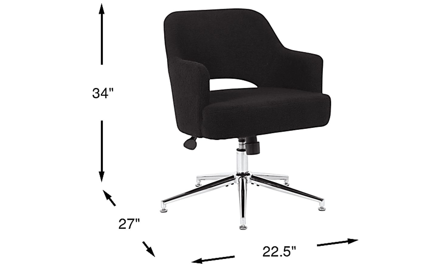 Ace your child's study space with the Silas desk chair. Soft boucle upholstery in a black color is offset by the chrome-plated base. The gas lift seat allows for easy height adjustment while the simple cutout shape on the back offers a touch of contemporary flair. 100% Polyester