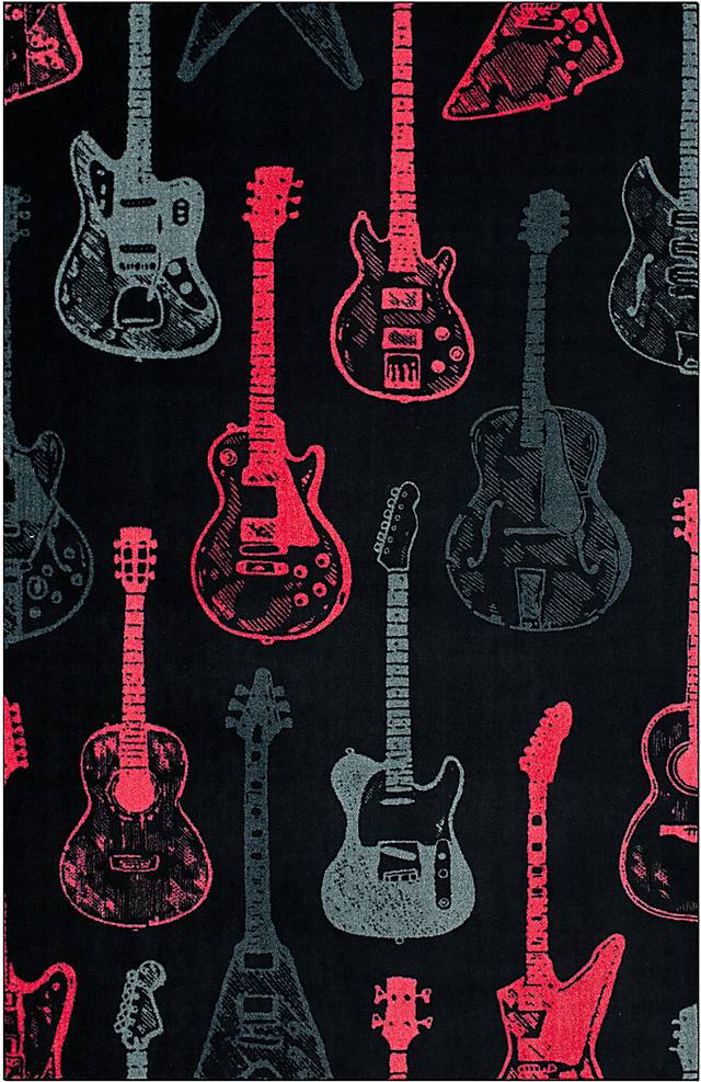 Get ready to rock and roll with our kid's Six String rug collection. Perfect for your little musician, this rug features colorful guitars to inspire their creativity and imagination. Made from 100% recycled polyester with a non-skid latex backing, the Six String rug collection offers superior strength stain resistance and fade-resistant color clarity while also maintaining super soft feel, fixed shape, and precise placement. A great choice for high-traffic areas and households with kids and pets.