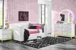 A round mirror is an excellent design choice for children's spaces because its curved silhouette helps soften the sharp, clean lines often found in bedroom furniture sets. Beyond the aesthetic appeal, the lack of sharp corners provides a safer, more approachable look, while the built-in backlighting helps enhance the sense of space in the room without being overpowering.