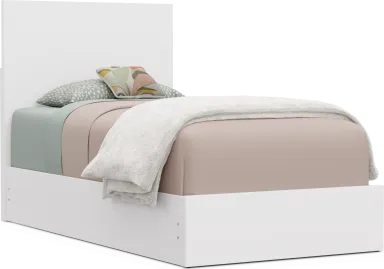 Keep your style light and current with the elevated appeal of the Skye panel bed. Finished in a crisp white laminate, this twin bed features a classic panel design that brings a well-manicured, contemporary look to the room. Mattress and foundation (if required) sold separately.