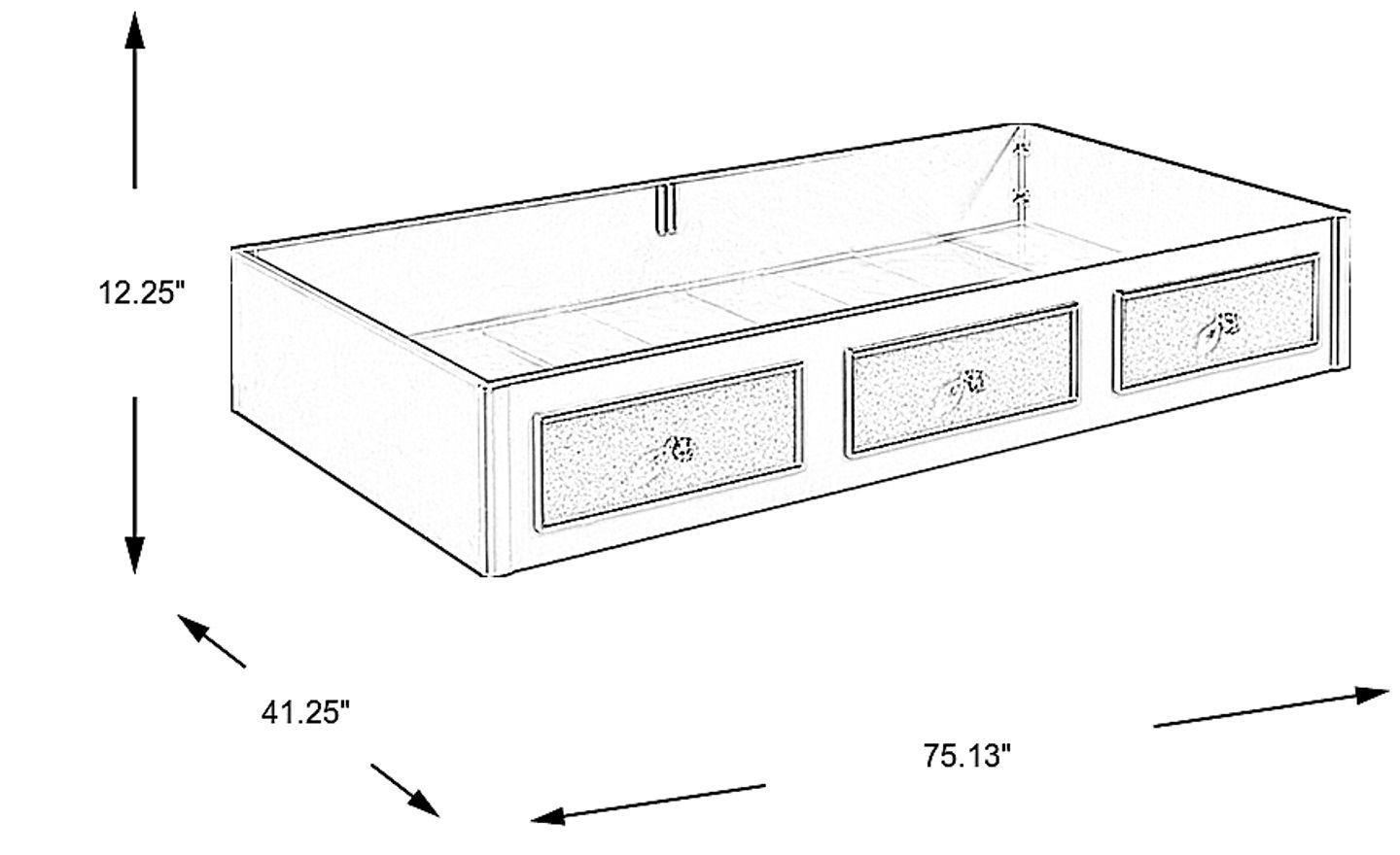Offering fabulously stylish storage for under the bed, the Petit Paris trundle makes storing things effortless! Featuring two removable dividers, your child can store anything from books and toys to an extra mattress. Crafted of pine solids and birch veneers in a stunning silver finish, crystal knob hardware makes a wonderful finishing touch.