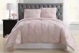The Soft Waves features a pleated face on the comforter and shams with a solid color reverse on 100% microfiber polyester. This Full/Queen set includes: one comforter 90x90 inches, and two standard shams 20x26 inches. Comforter and sham face and back cloth is 100% brushed microfiber polyester with polyester filling. This item is machine washable; however, please take care to use the appropriate size machinery.