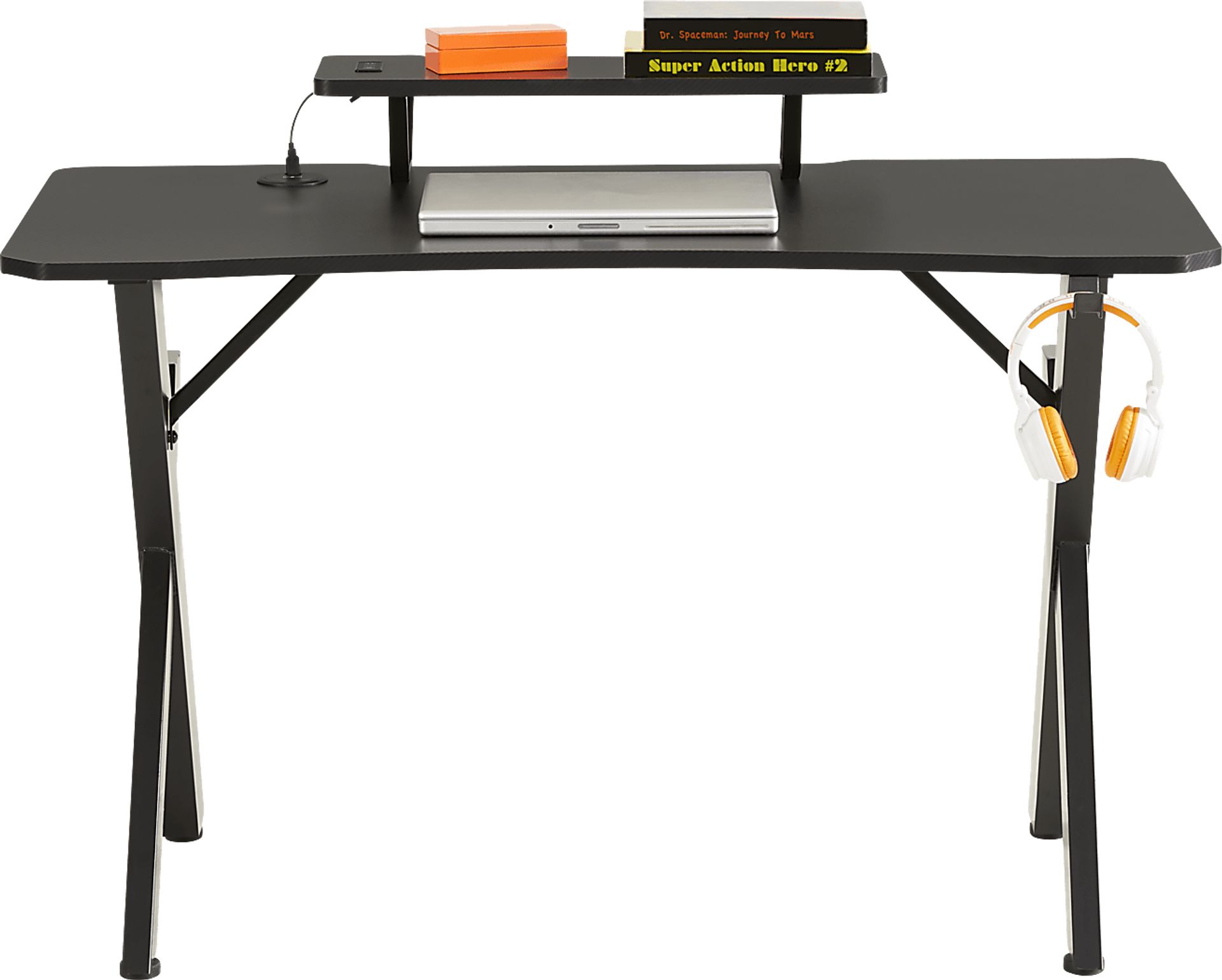 Specifically designed for game lovers, the Sound Trek desk was created to make gaming a breeze. With more surface area than a standard desk, this piece features an additional shelf for console or monitor displaying and a convenient USB port for power within reach. Located on the side, the hook makes it easy to hang headphones and wrap cords. Perfectly crafted with gamers in mind, this desk adds excitement to any room. Some customer assembly is required.