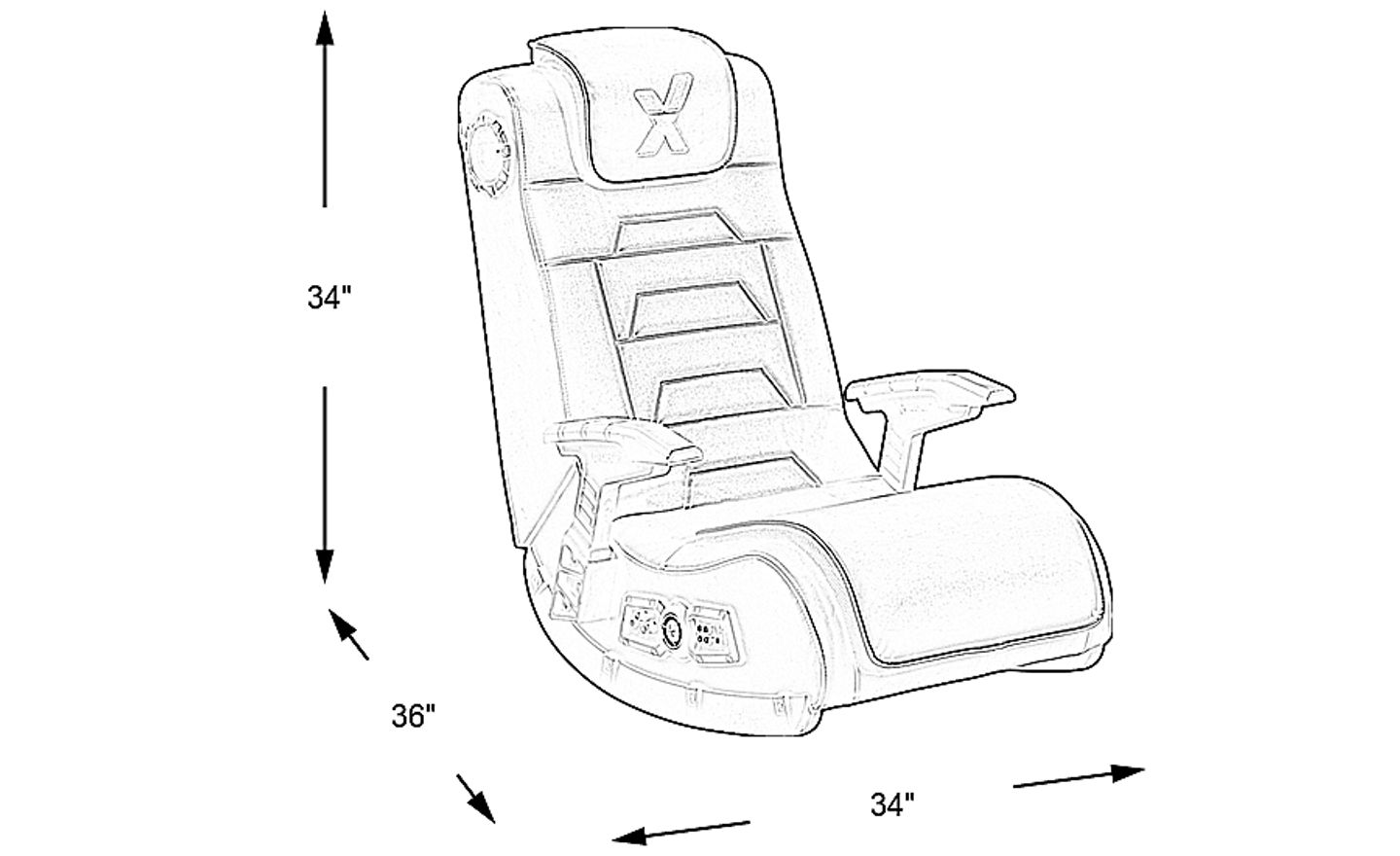 Upgrade their gaming setup with the awesome Sound Trek gaming floor rocker. This piece is jam packed with features including built-in speakers, sound control dials, headphone and microphone ports, a USB charging port and adjustable seat control for that perfect seating arrangement. Upholstered in a durable black polyurethane fabric, this chair is sure to please your gamer. 100% Polyurethane