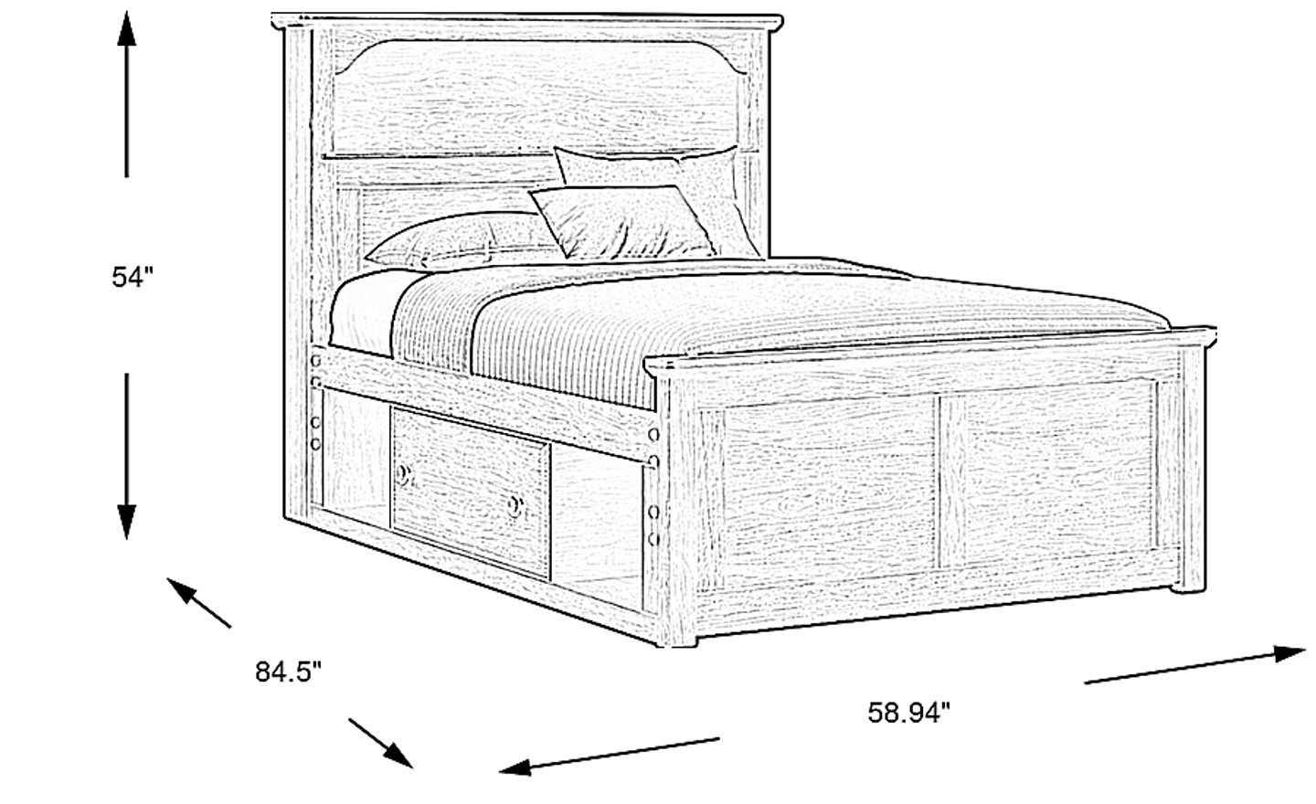 For smaller urban bedrooms or shared spaces where every square inch counts, this bed acts as a multi-functional centerpiece. By combining a sleeping surface with a bookcase and under-bed storage, it effectively replaces the footprint of a separate nightstand and a small chest of drawers. This "all-in-one" approach opens up the room's layout, providing more floor space for play or study while keeping the child's essentials organized within the bed's 84.5" x 59" footprint.