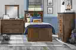 From the rich artisanship to the quaint feel, the South Bend bedroom adds a special charm for your child's imagination-filled days and dream-filled nights. Crafted of hardwood solids with birch veneers in a deep brown cherry finish, pieces in this room combine an ultra-classic look with unassuming high-tech features. The twin bed's bookcase headboard, with integrated wire management, has USB-A and USB-C ports that allow you to seamlessly charge some of your favorite electronic devices. The six drawers on the matching dresser are constructed with French dovetail joints in the front and English dovetail joints in the back for enhanced durability while soft closing glides make opening and shutting a breeze. Dust proofing on the bottom drawers make them perfect for more delicate clothing items. Round wooden knobs offer the dresser coordinating harmony while the mirror adds a picture-perfect final detail. Mattress and foundation (if required) sold separately.