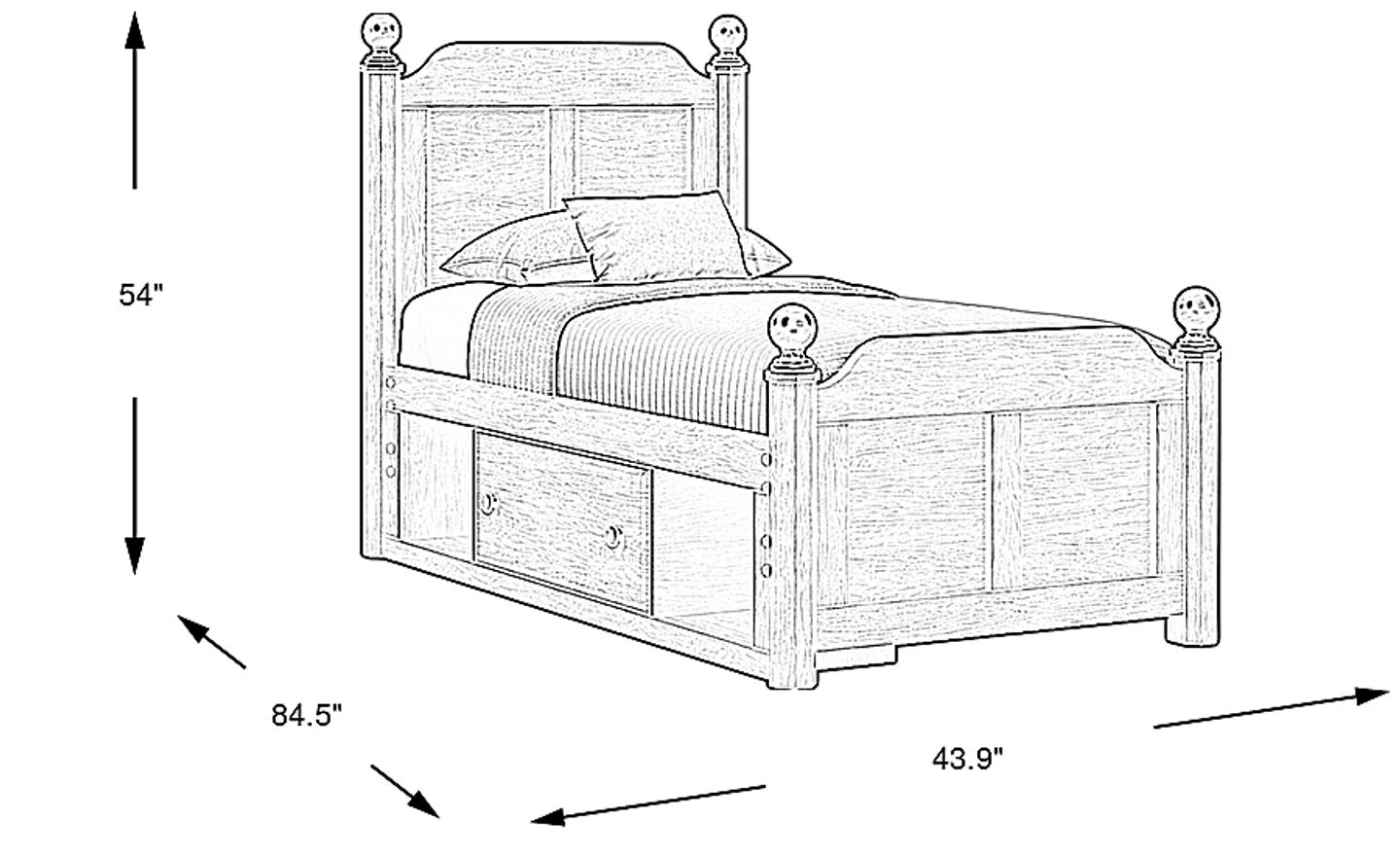 While a mattress and foundation are required and sold separately, storage beds of this design typically perform best with a bunkie board or a low-profile foundation. This setup provides the flat, sturdy support necessary for the mattress while ensuring the sleeping surface remains at a safe and accessible height for a child. Using a low-profile support system also prevents the mattress from obscuring the decorative panel headboard or the traditional symmetry of the posters.