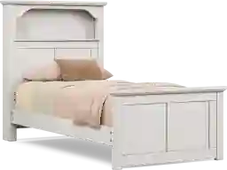 From the rich artisanship to the quaint feel, the South Bend bookcase bed adds a special charm for your child's imagination-filled days and dream-filled nights. Crafted with birch veneers in a neat washed white finish, this piece combines an ultra-classic look with unassuming high-tech features. The twin bed's bookcase headboard, with integrated wire management, has USB-A and USB-C ports that allow you to seamlessly charge some of your favorite electronic devices. Mattress and foundation (if required) sold separately.