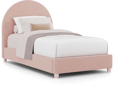 You'll be over the moon for the Moonstone bed at the center of the South Bend bedroom. Fully upholstered with soft boucle fabric, this bed features an arched headboard and a Montessori-style, wraparound frame that sits on base glides. Adjust the height of the bed with turned wooden legs that are painted pink to match the color of upholstery. Crafted with birch veneers in a neat washed white finish, the South Bend dresser and mirror deliver a timeless heirloom look. The dresser's six drawers are constructed with French dovetail joints in the front and English dovetail joints in the back for enhanced durability. Soft closing glides make opening and shutting each case a breeze. Round wooden knobs offer the dresser coordinating harmony while the mirror adds a picture-perfect final detail. Mattress and foundation (if required) sold separately. Bunkie board is required for this product (sold separately.) Upholstery: 100% polyester