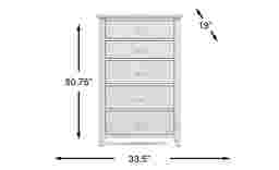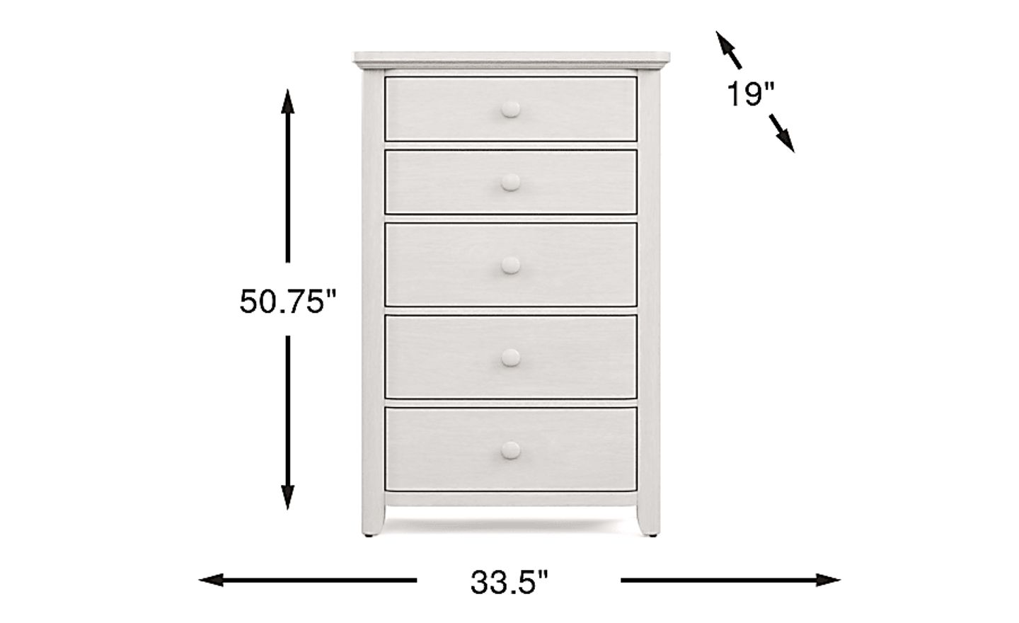 From the rich artisanship to the quaint feel, the South Bend chest delivers a timeless heirloom look updated to fit how you live today. Crafted with birch veneers in a neat washed white finish, this piece features five drawers constructed with French dovetail joints in the front and English dovetail joints in the back for enhanced durability. Soft closing glides make opening and shutting each case a breeze. Dust proofing on the bottom drawers make them perfect for more delicate clothing items. Wooden knobs round-out the look to stunning effect.