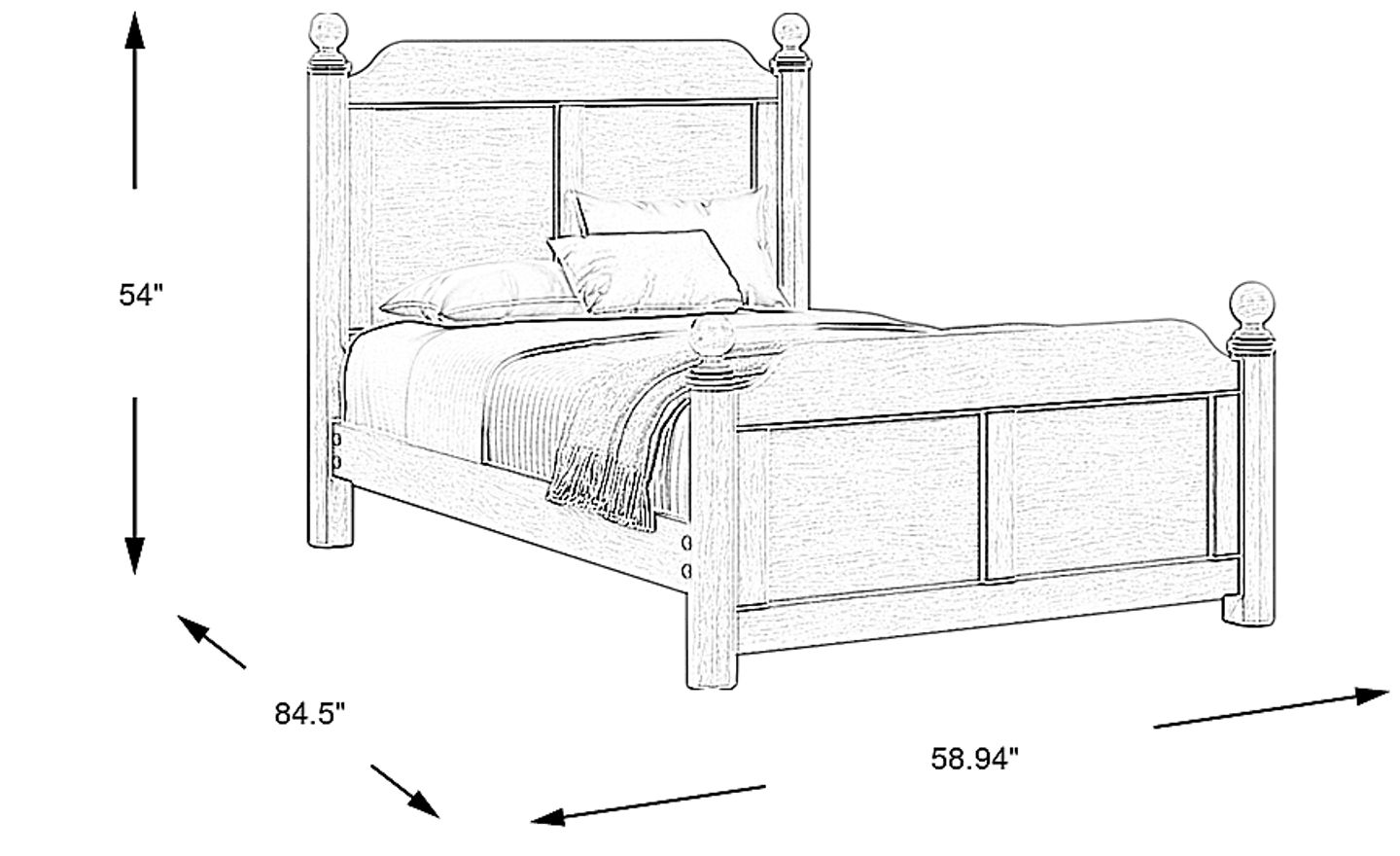While poster beds have a distinct visual presence, this model's 54-inch height is designed to provide style without dominating a room's vertical space. At approximately 84.5" L x 59" W, it fits comfortably in most standard bedrooms. Furthermore, the washed white finish is a strategic choice for smaller or darker spaces; it reflects natural light, helping the room feel more open and airy rather than cramped.