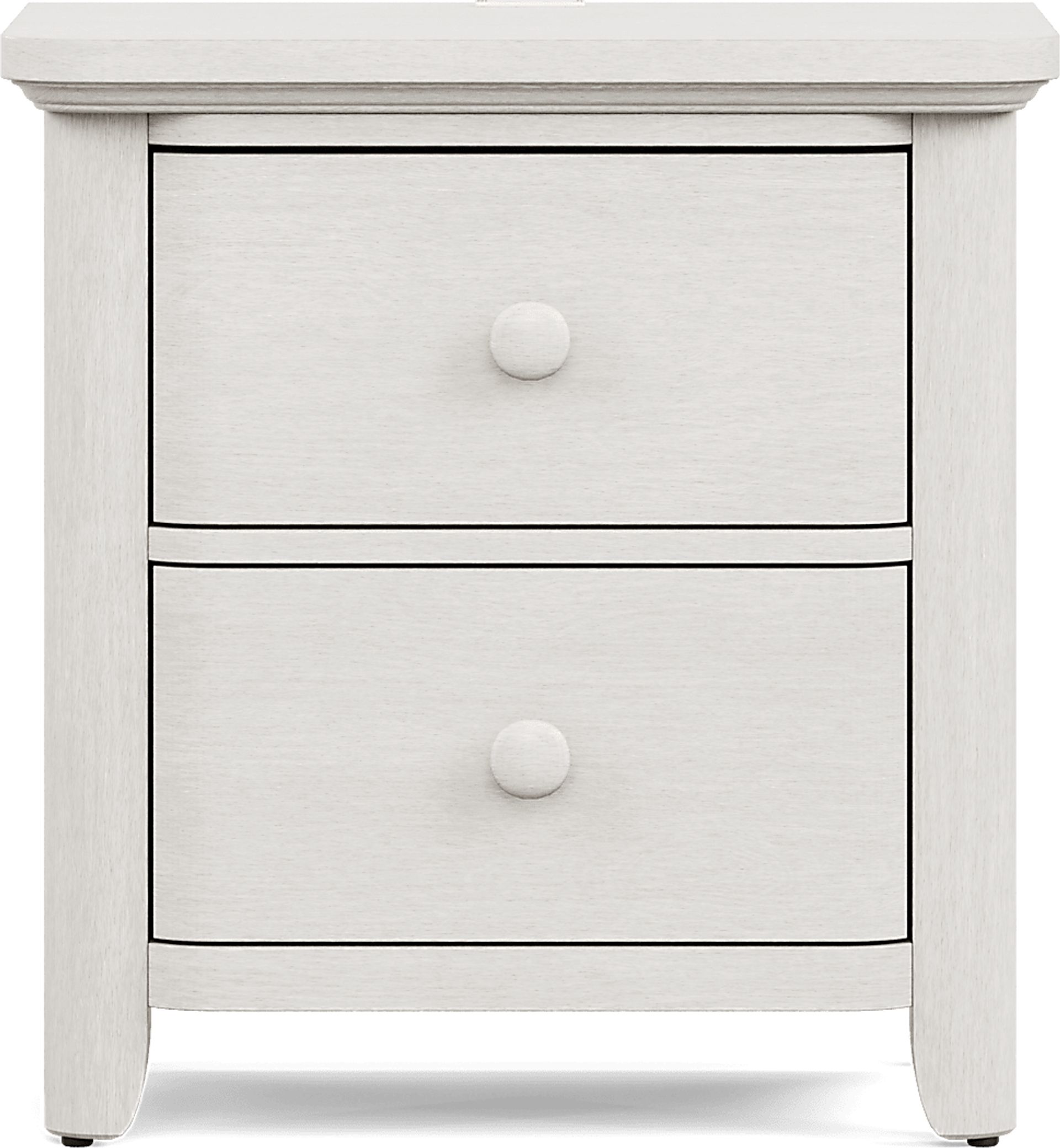 From the rich artisanship to the quaint feel, the South Bend nightstand combines an ultra-classic look with unassuming tech features. Crafted with birch veneers in a neat washed white finish, this piece has two drawers constructed with French dovetail joints in the front and English dovetail joints in the back for enhanced durability. Soft closing glides make opening and shutting each case a breeze. Dust proofing on the bottom drawer makes it perfect for more delicate items. USB-A and USB-C ports that allow you to seamlessly charge some of your favorite electronic devices. Wooden knobs round-out the look to stunning effect.