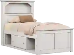 Kids South Bend Washed White Twin Bookcase Bed With Storage Side Rail