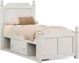 Kids South Bend Washed White Twin Poster Bed With Storage Side Rail