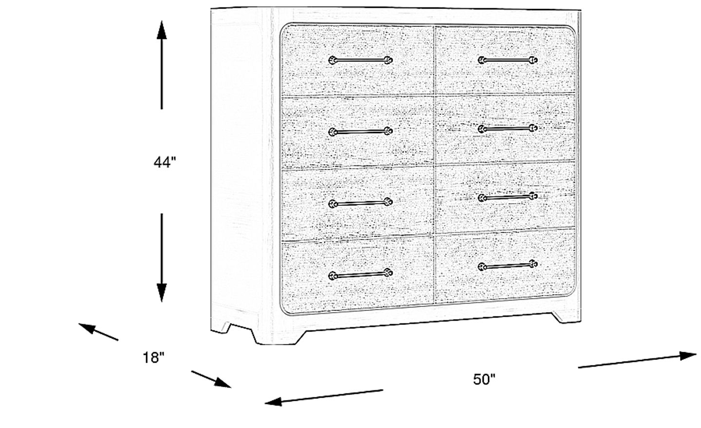 With impeccably engineered storage and chic, modern style, the Southside Loft chesser is the perfect choice for your loved one's space. Crafted with quarter cut oak veneers in an ebony finish, this piece features eight drawers of storage for clothes, accessories and more. Each drawer is constructed with French dovetail joints in the front and English dovetail joints in the back with ball bearing glides for enhanced durability. Sleek brushed nickel hardware highlight the rounded appearance of the drawer fronts, supplying a chic final look.