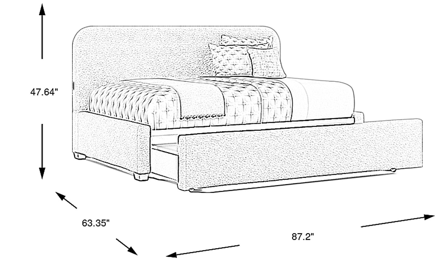 This bed features a space-saving twin trundle that glides out effortlessly from beneath the main frame with a simple pull of the front rail. It is an ideal solution for impromptu sleepovers, providing an extra sleeping surface without permanently occupying floor space. When the trundle is not in use, it tucks away neatly, maintaining the clean, contemporary aesthetic of the room. Please note that the trundle is sized for a standard twin mattress, which is sold separately.