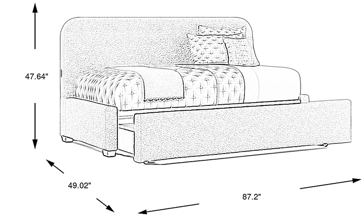 Both the main lounge bed and the pull-out trundle are designed to accommodate standard twin-sized mattresses. While mattresses and foundations are sold separately, using a high-quality twin mattress ensures the best fit and comfort. For the trundle, it is recommended to select a mattress profile that allows the unit to slide smoothly under the main frame when tucked away, ensuring the room remains tidy and organized.
