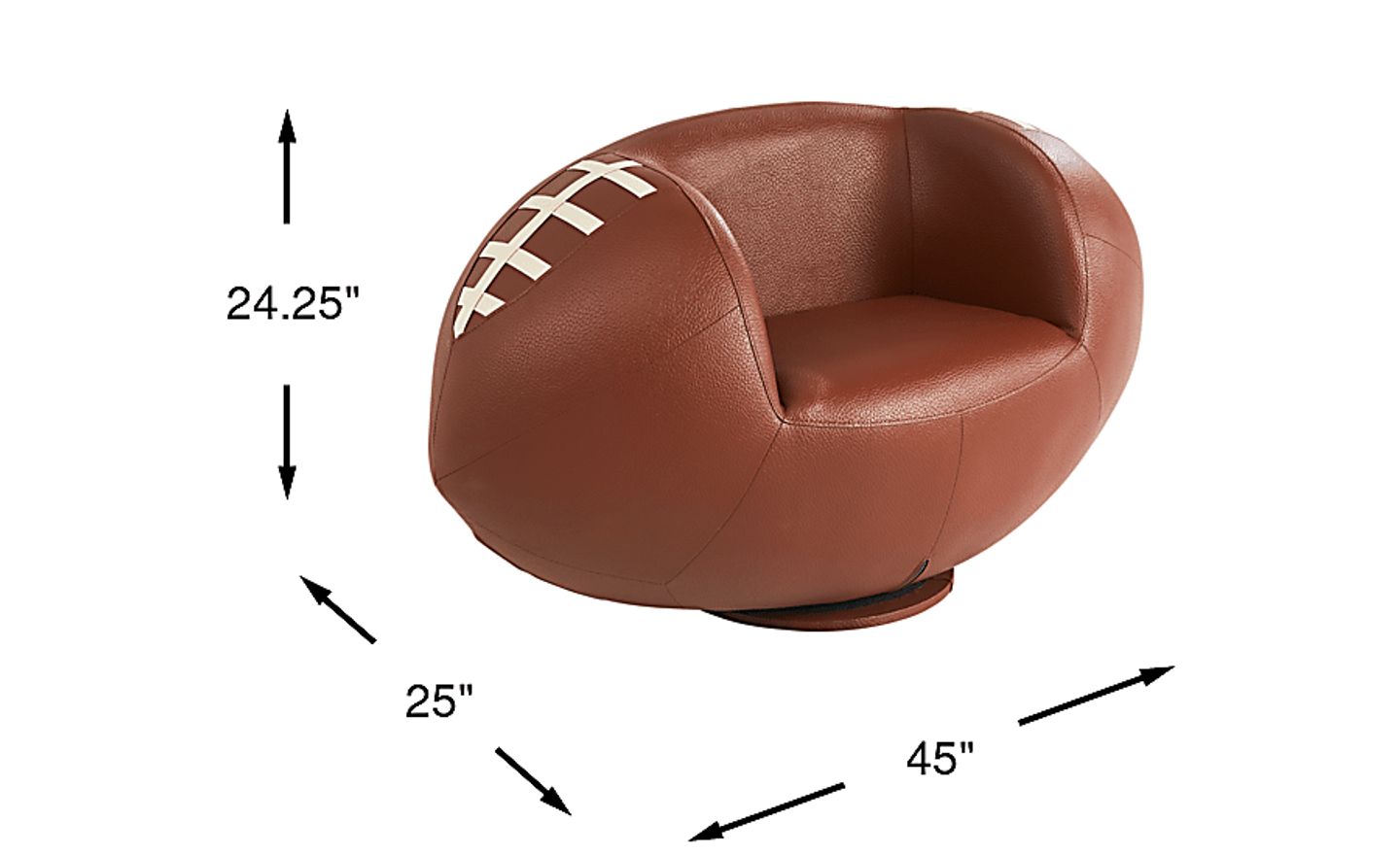 Give your football star the perfect place to sit with the Sports Zone Football Chair. Designed to look just a like a football with a comfortable seat shaped into it, this piece is sure to be a centerpiece in the bedroom or playroom.