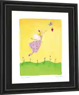 Whimsical and delightful addition to any child's room, the Spring Fairy artwork is a beautifully designed piece elegantly framed using a 3 inch profile made of a scratch resistant MDF in midnight dark color. It is framed under real glass and it is ready to hang with all the hardware pre-attached.