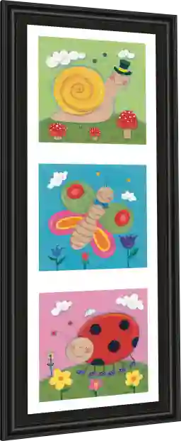 Complete your child's room decor with this cute fun and uplifting piece. The Spring is Here will surely bring lots of little smiles on a daily basis. This beautifully designed piece is elegantly framed using a 3 inch profile made of a scratch resistant MDF in midnight dark color. It is framed under real glass and it is ready to hang with all the hardware pre-attached.