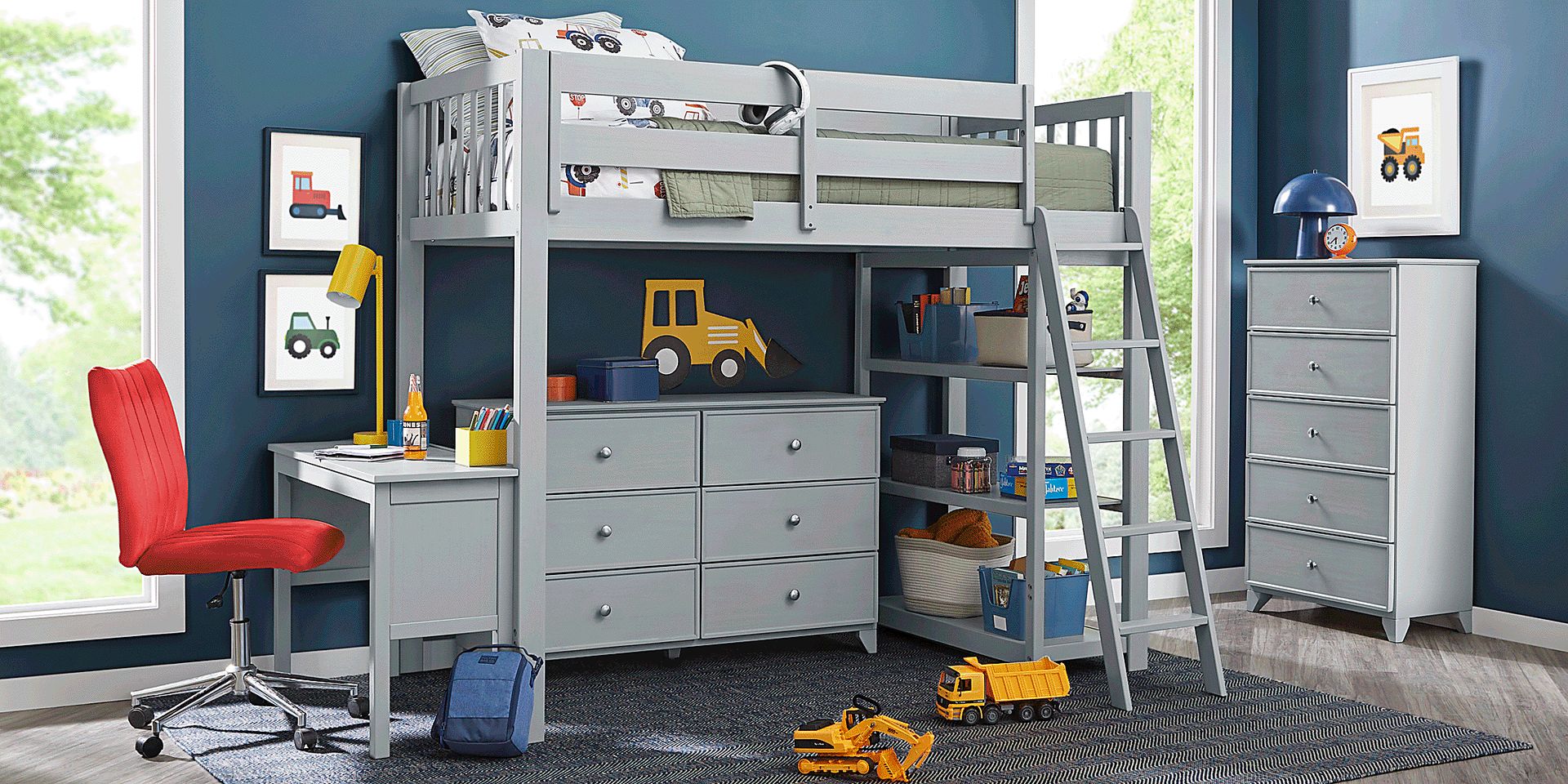 Kids Springtown 5 Pc Gray Wash Twin Loft Bedroom