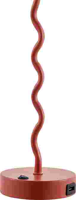 Illuminate your space with the bold and playful Kids Squiggly Lane Lamp, Set of 2, a striking example of Mid-Century Modern design. Featuring a wavy painted green iron body and a crisp white linen shade, this 20-inch tall lamp adds a sculptural touch and vibrant red to any room. A built-in USB port in the base offers convenient charging functionality, blending form and function effortlessly. Perfect for adding personality and practical lighting to your kid's room. Partial assembly may be required.