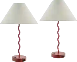 These lamps are built to handle the activity of a kid's room. The wavy, sculptural body is constructed from painted iron, a material chosen for its exceptional strength and long-term durability. The empire-shaped shades are made of white linen, a premium fabric that provides a clean, classic texture while being resilient enough to maintain its crisp look over time.