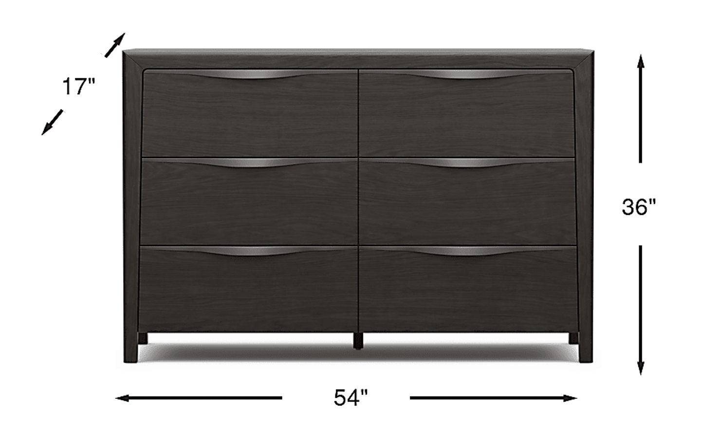 With dimensions of 54"w x 17"d x 36"h, this dresser is categorized as a low-profile, wide storage unit. Its shallow 17-inch depth is particularly advantageous for urban apartments or smaller suburban bedrooms, as it provides substantial storage capacity without protruding too far into the walking path. The 36-inch height also makes the top surface a perfect, accessible height for a mirror, lamp, or even a small television in a transitionally styled teen space.