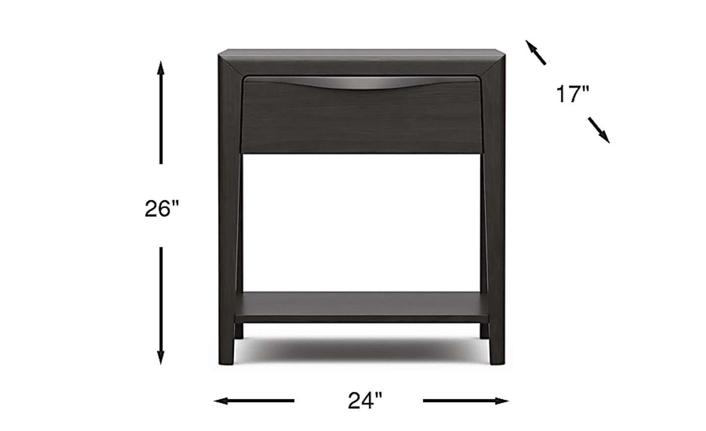 Shoot for the moon and land among the Stardust collection, where styling your kid's bedroom is a total blast. Finished in rich charcoal over poplar veneers and accented with sleek graphite hardware, this nightstand brings modern curves and bedside convenience to your teen or tween's space. With one drawer for nighttime essentials and an open cubby below for books, gadgets, collectibles and more, it is built to keep the important stuff close by, morning, noon or lights-out. Designed with enhanced durability and everyday ease in mind, the nightstand features French dovetail front and English dovetail back drawer construction and ball bearing glides.
