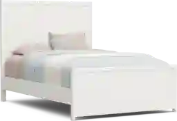Shoot for the moon and land among the Stardust collection, where styling your kid's bedroom is a total blast. Modern curves meet subtle sparkle in this dreamy set, with a shimmering pearlized white finish on poplar veneers and soft champagne-toned hardware for a light, bright look. Framed by smooth lines and a versatile silhouette that melds effortlessly into teen and tween spaces alike, this full-size panel bed makes a strong impression in any room. Mattress and foundation (if required) sold separately.