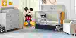 Starry Dreams With Mickey Mouse Gray 6 Pc Nursery With Toddler And Conversion Rails
