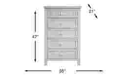 This chest is designed with five spacious drawers, providing ample vertical storage for a child's wardrobe. Measuring 47 inches in height but only 35 inches in width, it maximizes storage capacity while maintaining a compact footprint. This makes it an ideal choice for smaller bedrooms or urban apartments where floor space is at a premium but organizational needs are high.