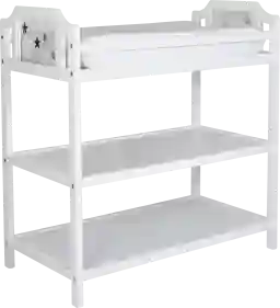 Complete your baby's nursery with the Starry Grove white changing table. The Starry Grove changing table is the perfect complement to the matching crib. It features a surrounding safety rail to secure your baby in place as you change and dress them with ease, while also providing ample shelf storage underneath to conveniently hold all your baby's essentials. Changing pad not included. Crib sold separately. Customer assembly required.