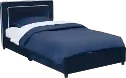 Inspire sweet dreams with the Suaba twin bed. Perfect for your little one's bedroom, this kids' twin bed boasts velvety blue upholstery with bright white pipping for a look both you and your child will love. Generous padding ensures long-lasting comfort and support while sitting up to read or watch TV. Constructed with a durable wood frame with high quality hardware that provides a strong and sturdy bed. This eliminates the need for a spring box. Holds up to 350 pounds. This twin bed meets or exceeds all CPSIA requirements. Twin mattress not included. Customer assembly is required.