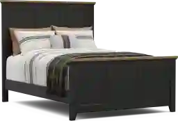 Serene design and timeless balance define the Sugar Hollow collection, where thoughtful craftsmanship meets the ease of growing up in style. Embodying this harmony, the full panel bed's tailored silhouette brings an enduring sense of calm and sophistication to any bedroom with clean panel detailing, a beautiful black finish and soothing pine veneer accents that highlight the architectural simplicity of the collection. The thoughtfully integrated adjustable rails can be mounted at different levels to raise or lower the mattress platform as needed, adapting effortlessly to comfort, safety and style. Mattress and foundation (if required) sold separately.