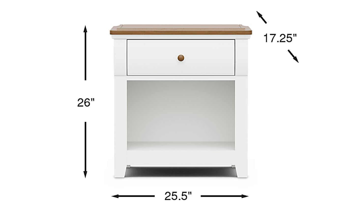 With dimensions of 25.5"w x 17.25"d x 26"h, this nightstand offers a thoughtful, compact footprint that is well-suited for smaller living spaces or shared bedrooms. Its 26-inch height is expertly scaled to sit level with or slightly below standard mattresses, ensuring a child can safely and easily reach a lamp, water bottle, or alarm clock from their bed.