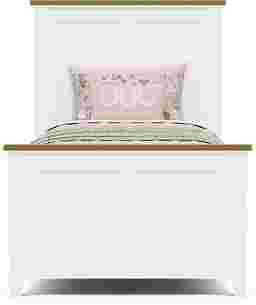 Serene design and timeless balance define the Sugar Hollow collection, where thoughtful craftsmanship meets the ease of growing up in style. Embodying this harmony, the twin panel bed's tailored silhouette brings an enduring sense of calm and sophistication to any bedroom with clean panel detailing, a beautiful white finish and soothing pine veneer accents that highlight the architectural simplicity of the collection. The thoughtfully integrated adjustable rails can be mounted at different levels to raise or lower the mattress platform as needed, adapting effortlessly to comfort, safety and style. Mattress and foundation (if required) sold separately.