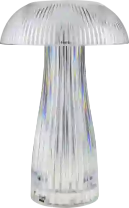 Illuminate your kid's room with a touch of traditional artistry by incorporating the Kids Tall Mush Lamp into your decor. Carefully constructed of clear acrylic material, this mushroom-shaped lamp with a ribbed design, creates a textured, crystal-like appearance. It stands at a convenient height of 10 inches, making it an ideal choice for an end table or nightstand. Add this fun lamp to your kid's bedroom Partial assembly may be required.