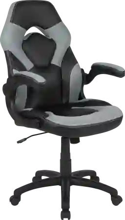 If you are a serious gamer, you need an ergonomic office chair to keep up with the demands of your marathon gaming sessions. Your couch may feel comfortable, but you need adequate seating while holding the controller for hours at a time. This high back racing style game chair will outperform your couch with healthier benefits. The ergonomic design of the Tournne black and gray racing chair offers generous padding with a wing style back to cradle your torso. The padded arms provide a comfortable resting position while holding your controller and relieve pressure off your shoulder and neck. If you're playing on your computer and want to get closer to the action the arms flip backward to pull yourself underneath the desk without having to adjust the seat height. The tilt lock mechanism underneath the seat locks in an upright position when you no longer want to lean and rock back. To be considered a true gamer you need a dedicated gaming chair to take your gaming to new heights, whether you have followers who watch you on a streaming service or like to interact with other gamers online. Customer assembly is required.