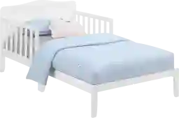 The Trovia Toddler Bed is simple and sophisticated.Striking finishes that complement the solid panel white headboard and a low profile footboard,designates as the perfect nesting spot for your toddler.Complete with dual side guardrails for security at night.The Trovia also features a solid wood frame, solid slat rails, and secondary support leg for extra durability. Customer assembly is required.