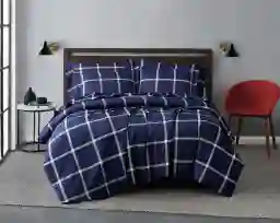 Simple lines of the Urban Covers make the best coordinates for your room. A medium size windowpane pattern is a perfect coordinate to any busy room or if you are looking for a modern look. It features white lines on a navy background. This item is machine washable, but care should be taken to wash in appropriate size equipment to avoid damage. The set includes: one full/queen comforter 90x90 inches and two standard shams 20x26 inches.