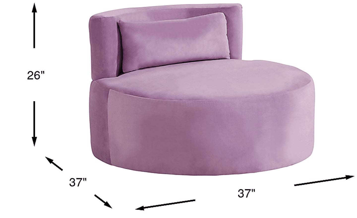 Give your kid the perfect spot to sit and enjoy movies, video games and more with the Valencia II swivel chair. Soft velvet purple upholstery covers this round chair all over and a curved backrest makes sure your child can sit back and relax.